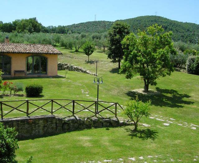 Volkomen beschut, naast een flinke strook lavendel, ligt het zwembad waar Maurizio me staat op te wachten. ‘Benvenuto!’ en samen lopen we rond over zijn terrein van 8 hectare. Telkens wil ik even stoppen: bij een mooi uitzicht over het oude stadje Todi of bij de ruime appartementen die inderdaad als kleine farmhouses aanvoelen met het onbewerkte hout, de open haard, de grote houten eettafel. Of nee, bij de ontelbaar veel olijfbomen of de tuin. “Wacht hier even,” zegt Maurizio als we onder het overdekte terras staan. Andere gasten drinken rustig een glaasje aan één van de tafels.