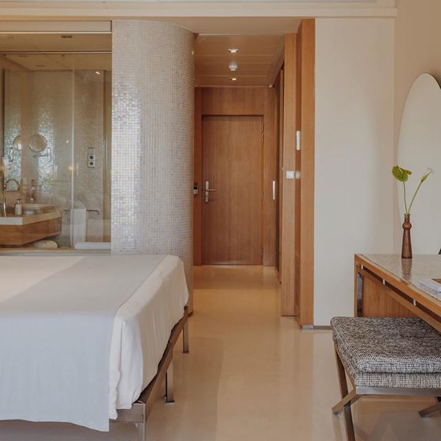 De riante kamers van Aguas de Ibiza Grand Luxe Hotel zijn rijk gedecoreerd. Zodra je er binnenwandelt, ga je direct over in de relax-modus. De spa zorgt nog eens voor een extra oase van rust. Naast een sauna, en een binnenzwembad staat er een team van professionals voor je klaar. Of je je nu van top tot teen wil laten vertroetelen of body & mind met elkaar in balans wil laten brengen: de mogelijkheden zijn eindeloos.