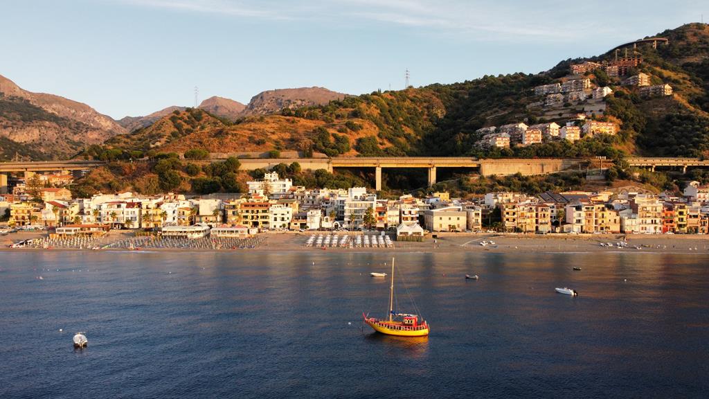 In langgerekt Letojanni, Hip en trendy, Privéstrand voor de deur, 15 minuten rijden naar Taormina, Hotel met mediterrane sfeer, Kamers met ruime balkons & inclusief transfers.