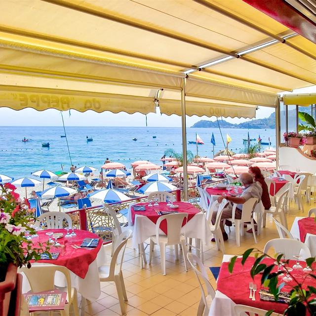 Het mooiste van Hotel Da Peppe is de ligging. Door de weg gescheiden ben je direct bij het restaurant van Da Peppe en aan het kiezelstrand van Letojanni, waar een paar zonnebedjes voor het hotel zijn gereserveerd. Vele andere strandtenten waar je een bedje kunt huren tegen betaling. Je staat direct op de gezellige boulevard, waar je veel restaurantjes vindt en waar je goed kunt eten. Da Peppe ligt centraal en het is dan ook gemakkelijk om met de bus het pittoreske stadje Taormina te bezoeken, met de trein Catania te verkennen of met één van de vele excursies, meer van het eiland Sicilië te ontdekken. Een beleving op zich!
