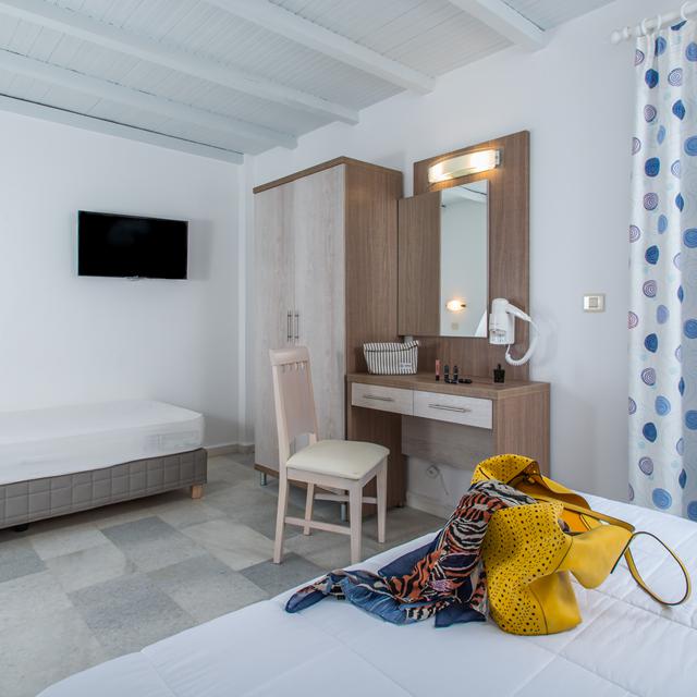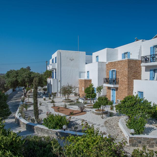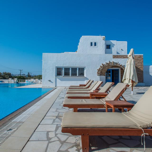 Hotel Naxos Holidays is een fijn adres voor een vakantie op het mooie Naxos. Het ligt slechts op een steenworp afstand van het zandstrand van Saint George en ook ben je zo in het centrum. Het is de ideale uitvalsbasis voor het ontdekken van mooie plekjes op dit eiland van de cycladen. Aan het einde van een heerlijke dag, is het fijn thuiskomen en bij de poolbar kun je een welverdiend drankje en hapje bestellen. Overdag is het ook goed toeven hier op een ligbedje bij het zwembad en dat maakt het een ideaal plekje voor pure rust en ontspanning in een vriendelijke sfeer.
