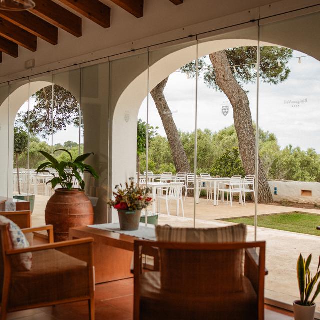 ‘Zo sereen als hier…’, zucht ik van geluk. Ik kijk naar de voormalige witte boerderij die in al haar perfectie rustig siert in de zon. Voor me dobbert het zwembad dat lijkt op een meertje dat Moeder Natuur hier zo had kunnen maken. En ook de olijfbomen bewegen langzaam op de wind. Deze oase van rust noem ik: Hotel Rural Binigaus Vell. Ik ontmoette eigenaresse Anna die ochtend hier op het wonderschone platteland van Menorca. ‘Binigaus Vell is al jaren eigendom van de familie Triay Barber. Vroeger verbouwden we op de 220 hectare grond graan en produceerden we melk. Maar inmiddels hebben we het omgetoverd tot een plek waar je de tijd letterlijk kwijtraakt. Waar je geniet en verder eigenlijk niets,’ zei ze lachend.