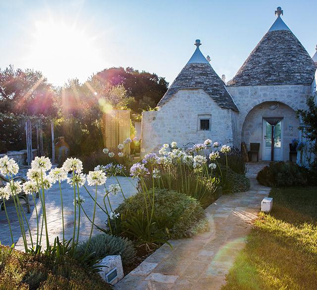 Het Leonardo Trulli Resort lijkt wel een sprookjesbos. De liefelijke trulli zijn omringd door paarse bloemen en de witte gordijnen bij de ingang van de trulli wapperen in de wind. Dit adresje kent een bijzondere geschiedenis: aan het begin van de 20e eeuw diende de oorspronkelijke eigenaar, Leonardo Cardone, in het leger. Na de oorlog kon hij terugkeren naar zijn geliefde Puglia, waar hij deze trulli bouwde voor zijn familie. Een verhaal van hoop en liefde, dat je nog steeds overal in het resort voelt.