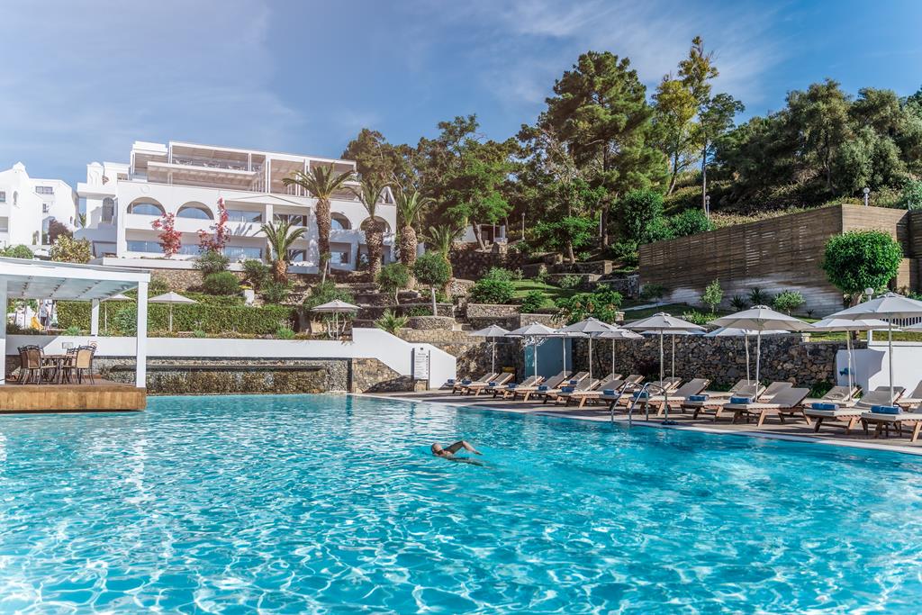 Griekse gastvrijheid ten top, Stijlvolle kamers, Hemelse bedden, Meerder zwembaden om in te plonzen, Schilderachtige omgeving, Onafhankelijk duurzaamheidslabel & inclusief transfers.
