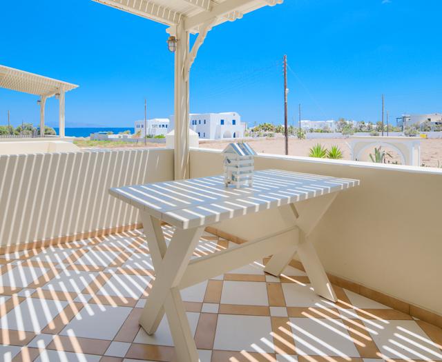 Er hangt iets in de lucht dat me meteen laat ontspannen op deze prachtige plek. Misschien is het de geur van vers gewassen linnen, misschien de zachte gloed van het ochtendlicht op de witte gevels. Mijn kamer bij Monolithia voelt als een serene cocon – fris, modern en met een stijlvol knipoog naar de Cycladische bouwtraditie. Terwijl ik op mijn privéterras zit en mijn blik over de zee laat glijden, hoor ik af en toe een vliegtuig passeren. Maar dat stoort me niet. Het herinnert me eraan hoe toegankelijk dit paradijs eigenlijk is, zonder afbreuk te doen aan de rust die ik hier vind.