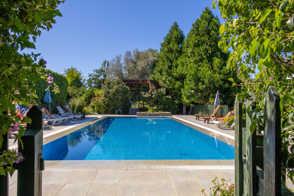 Wat een sfeervolle plek!, Lekker bijkomen aan het zwembad, In een mooie groene setting, Op de fiets door Ohrid, Heerlijke grote en groene tuin, Optionele wijnproeverij & inclusief transfers.