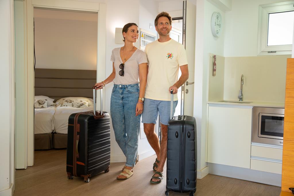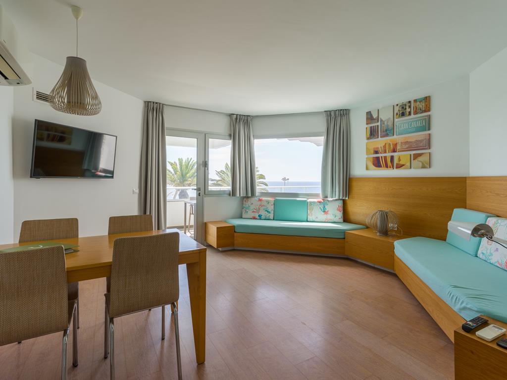 In een modern appartement, Met het comfort van thuis, Broodjesservice in de ochtend, Aan de boulevard van Playa, Plof neer op de balkonstoelen, Wel zo fijn, Nederlandse host & inclusief transfers.