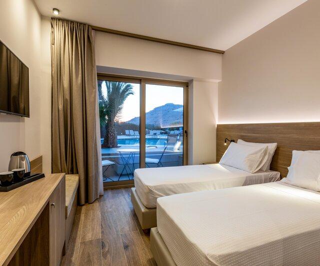 Het hotel heeft een modern en ontspannen uitstraling die goed past bij de rustige sfeer van Pefki. De opzet is overzichtelijk en comfortabel, met fijne plekken om te zitten en te ontspannen. In het restaurant geniet je dagelijks van een gevarieerd buffet met mediterrane invloeden. Een prettige plek om de dag goed te beginnen of af te sluiten.